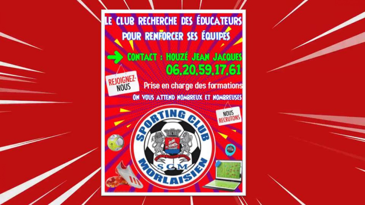 Le Sporting Club Morlaisien est à la recherche d'éducateurs pour renforcer ses équipes.