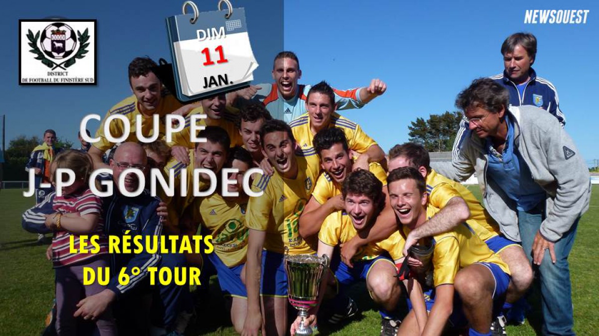 Cinq rencontres, au programme de ce 6ème tour de la coupe Jean-Pierre Gonidec, se sont joués, ce dimanche après-midi. Les matchs FC Quimperlé B - Mellac, Ergué-Gabéric - Hermine Concarneau, FC Odet - Clohars-Fouesnant avaient été reportés pour des terrains municipaux impraticables. Pas de surprises, la logique a été respectée avec les qualifications du Châteaulin FC, Plounévézel, Trégunc, Clohars-Carnoët et les Paotred Dispount.