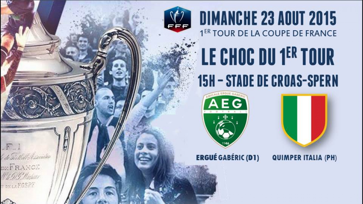 La Ligue de Bretagne vient de mettre sur son site le tirage du premier tour de la Coupe de France. Les rencontres se dérouleront le dimanche 23 aoüt. Parmi les affiches du Finistère-Sud, on peut dèjà noter les chocs entre clubs de Division 1 et ceux de Promotion d'Honneur : Plogonnec (D1) reçoit Quéméneven (PH), Camaret (D1) rencontre Telgruc (PH) sur son terrain et enfin, l'AEG d'Ergué Gaberic (D1) va affronter le Quimper Italia qui vient de monter en PH.