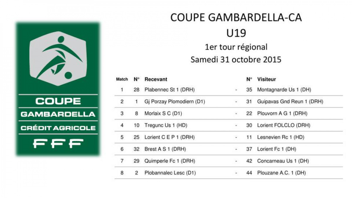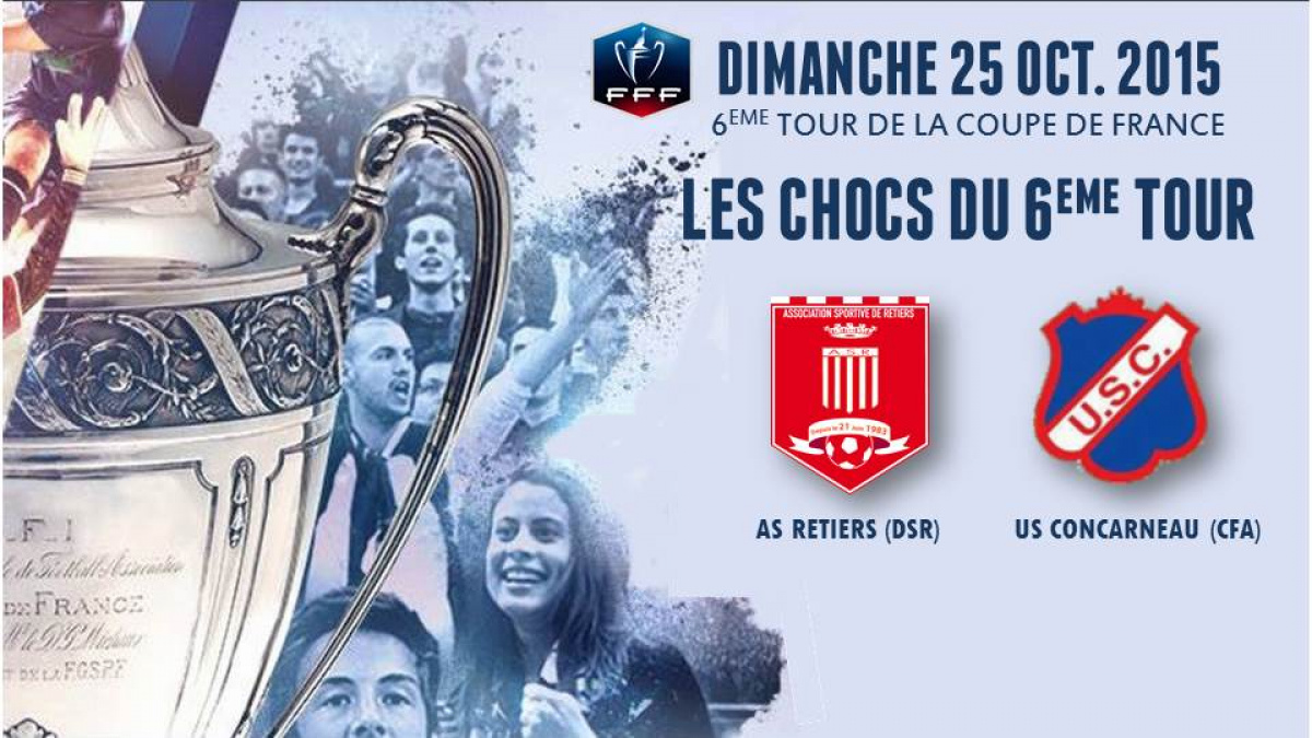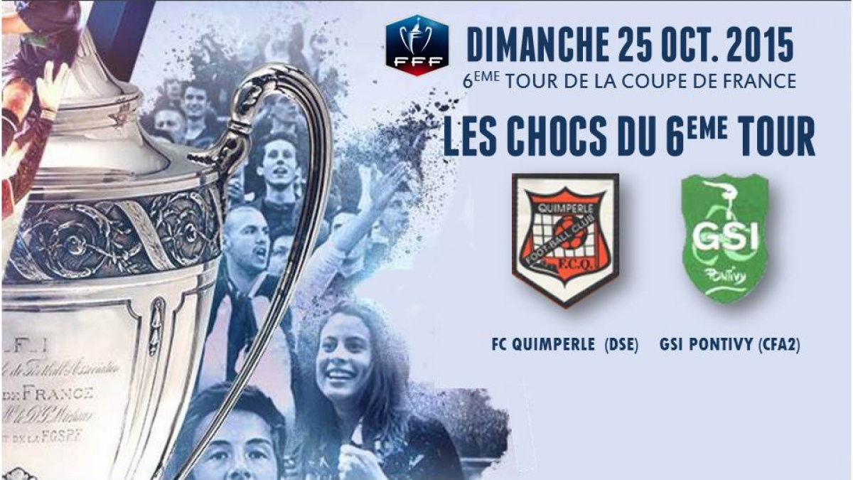Le tirage au sort du sixième tour de la Coupe de France a désigné les deux rencontres opposant les équipes du Sud-Finistére. Les Concarnois (CFA) se déplaceront à Retiers affonter l'AS Retiers évoluant en DSR. Le FC Quimperlé (DSR) recevra la GSI Pontivy (CFA2) et retrouvera à l'occasion son ancien joueur Zura Adjoev. Les deux rencontres se dérouleront le dimanche 25 octobre à 15 heures. Samedi 31 octobre, pour le 1° tour régional de la Coupe Gambardella, le FC Quimperlé (DRH) recevra l'US Concarneau (DH).