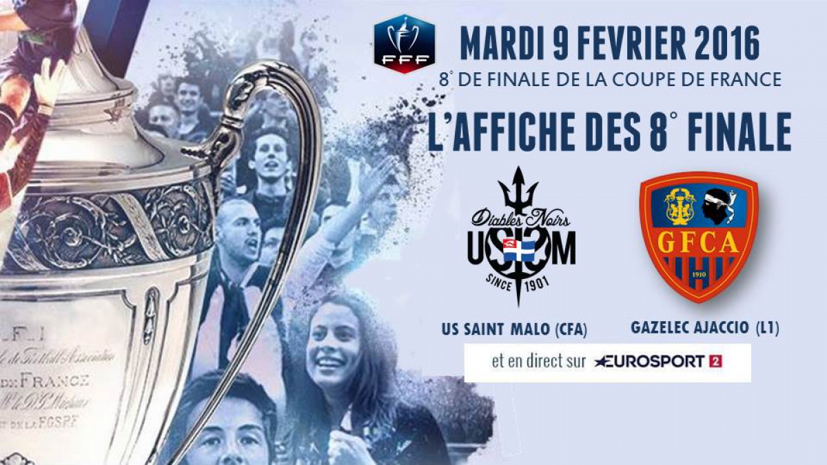 Depuis 67 ans, les Malouins n'avaient été à pareille fête. Le 16 janvier dernier, les Diables Noirs se qualifiaient pour les les 8ème de finale de la Coupe de France. Ils ont éliminé successivement Pontivy (CFA2), le Stade Montois (CFA) Avanches (National) et le Red Star (Ligue 2). Il ne manquait plus qu'une Ligue 1 au tableau de chasse. Le tirage au sort a satisfait le souhait et c'est le Gazelec d'Ajaccio qu'affrontait l'US Saint Malo au Roudourou devant plus de 8000 supporters Bretons dont plus de 6000 Malouins.