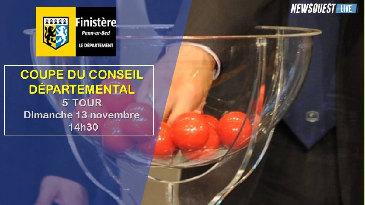 Le District Finistère Sud de la Ligue de Bretagne de Football vient de communiquer la liste des rencontres pour le 5° tour de la Coupe du Conseil Départemental. Les rencontres se dérouleront le dimanche 13 novembre à 14h30