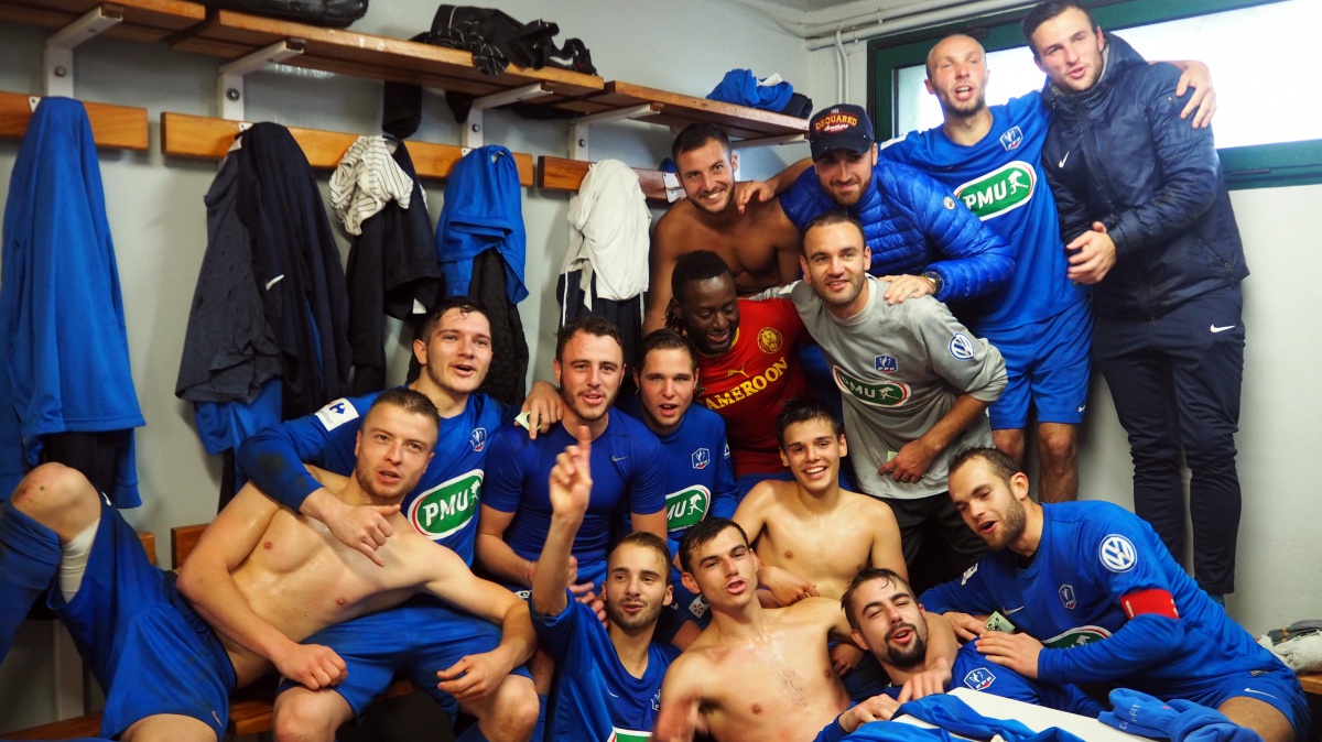 Le FC Landerneau à leur joie de leur qualification à Plogonnec