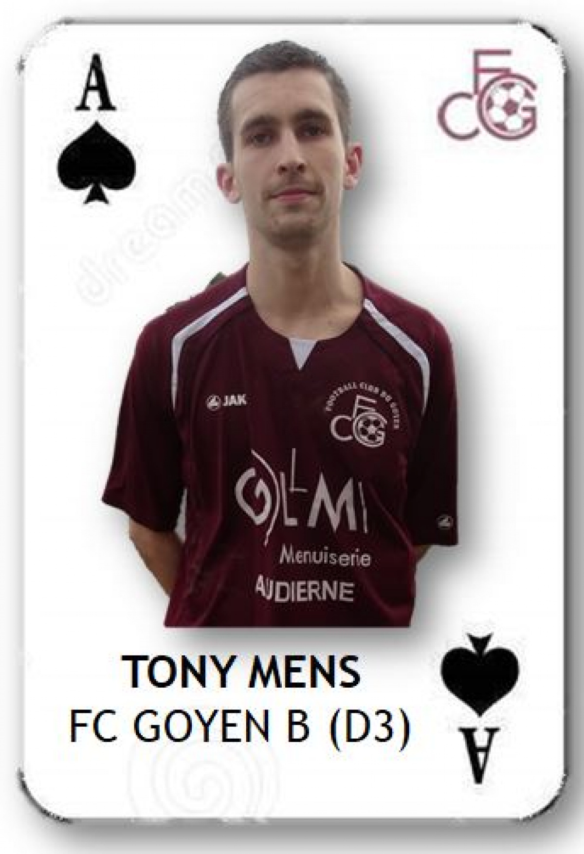 Tony Mens, FC Goyen B (D3): " Le FC Goyen B a compté sur l'efficacité de son duo gagnant, ce dimanche gagnant face à Pont-Croix avec Philippe Magadur, ex-joueur de Plouhinec et de Penn Ar Bed, et Damien Mens. Pur produit du club, Tony Mens a exploité à fond les largesses des Pontécruciens pour se distinguer d'un triplé pour une victoire sans appel des joueurs du FC Goyen (5-0). Bien calé en milieu de peloton, la réserve du FC Goyen est assuré de son maintien en D3"