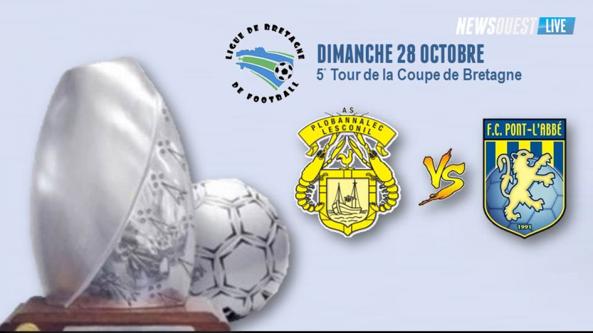 Le tirage au sort du 5ème tour de la coupe de Bretagne a été effectué dans la partie Sud, à l'antenne de Quimper. 10 matchs seront au programme du week-end du 27 et 28 octobre. Parmi les affiches, l'AC Carhaix (D1) se confrontera au gros morceau du plateau, l'US Concarneau B (R1). Le derby bigouden entre l'AS Plobannalec-Lesconil (R2) et le FC Pont l'Abbé (R3) sera aussi scruté. Comme la rencontre remise entre le FC Gourin (R3) et le Quimper Kerfeunteun FC (R3). Le Stade Mellacois (R3) devra faire face aux DC Carhaix (R3). Quant au petit poucet de la compétition, l'AS Pont de Buis (D2), il défiera sa première équipe de ligue de la compétition avec les CS Penmarc'h (R2).