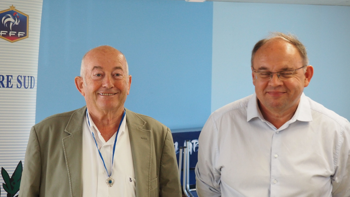 Daniel Guigot (Châteaulin FC) avec le président du district 29 Sud