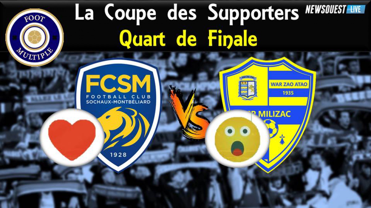 On connait maintenant les deux premiers clubs qualifiés poir les demi finale de la Coupe des Supporters organisée par Foot Multiple. Ce sont le Club Sportif Sedan Ardennes (N2) et Pouzauges Bocage FC Vendée (N3). Après un magnifique parcours l'Amicale Sportive Châtaigneraie Vendée Football (N3) et USC Corté (N3) sont éliminés. Aujourd'hui, place aux deux dernières affiches dont celle avec Milizac, le dernier club breton. Bastia (N1) rencontrait Sautron (N3) et les Milizécois étaient opposés au FC Sochaux, grand club historique français qui jouait la Coupe d'Europe dans les années 1980. Les deux dernières équipes qualifiées sont le FC Sochaux et Bastia. Milizac tombe aux portes des demi-finales après un très beau parcours. Accès aux votes