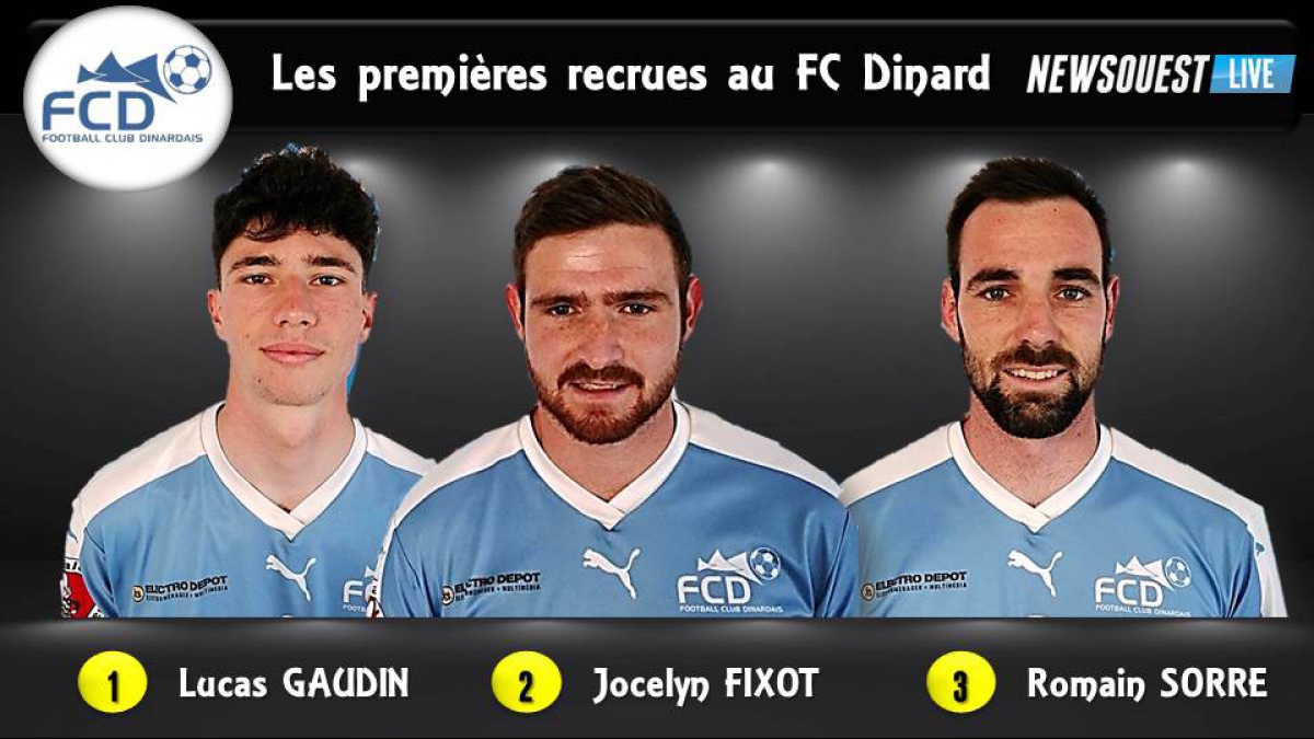 Le FC Dinard annonce l'arrivée de trois nouvelles recrues sur les réseaux sociaux. Lucas GAUDIN est la première arrivée au club. C'est un jeune milieu de terrain de 20 ans qui arrive de L'Entente Samsonnaise Doloise, une formation de Régional 1. La seconde recrue, Jocelyn FIXOT est en provenance de Saint Grégoire, une formation de Régional 2. A 24 ans, il évolue au poste de défenseur. Enfin Romain SORRE (28 ans) jouait la saison dernière à l'Entente Samsonnaise Doloise, une formation de Régional 1.