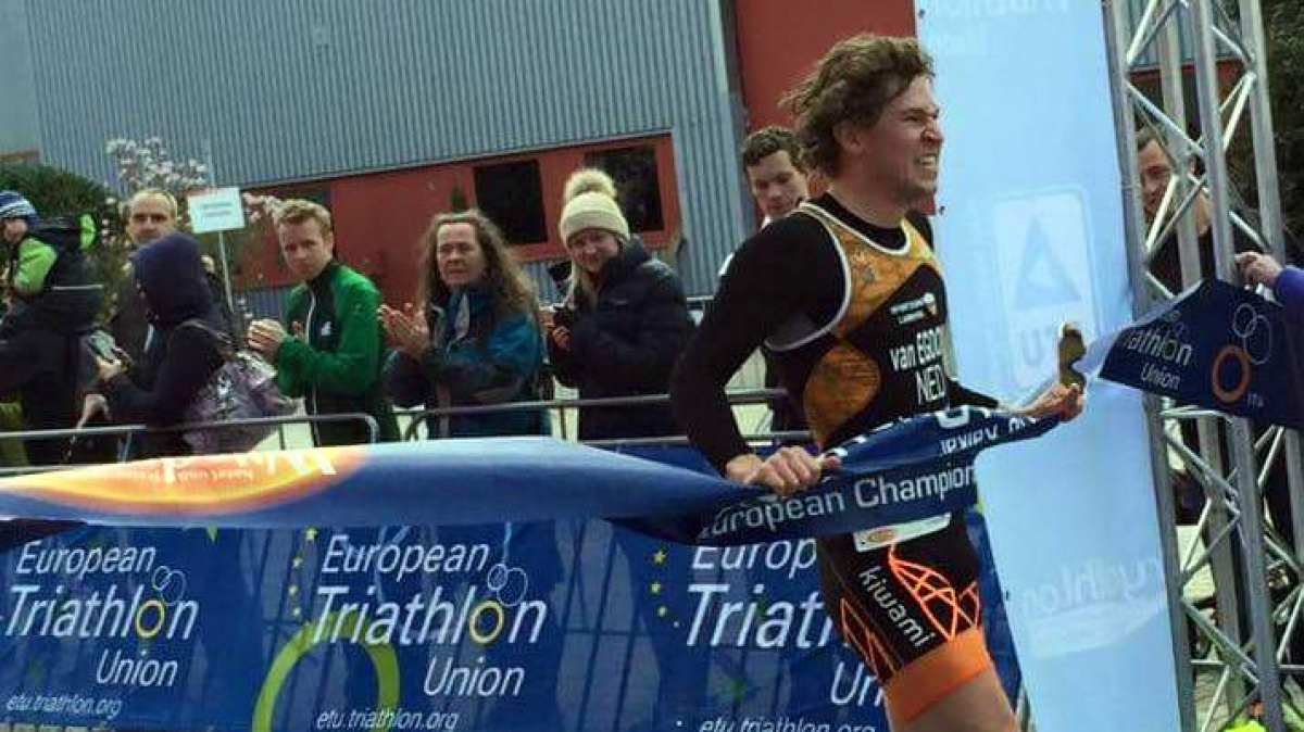 Le Néerlandais Jonk Van Egdon coupe la ligne d'arrivée
