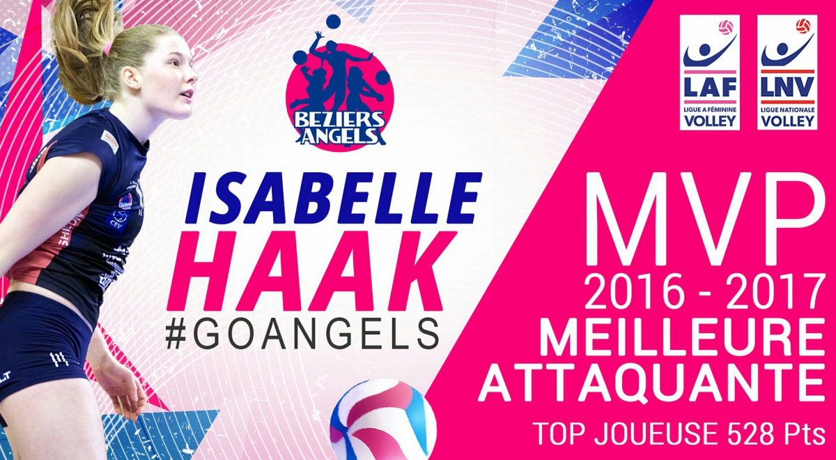 La saison de Volley Ball vient de se terminer. La jeune attaquante franco-suédoise de Béziers Isabelle Haak (18 ans), meilleure marqueuse de Ligue A féminine, a été sacrée ce mardi meilleure joueuse du championnat par la Ligue nationale de volley-ball (LNV).