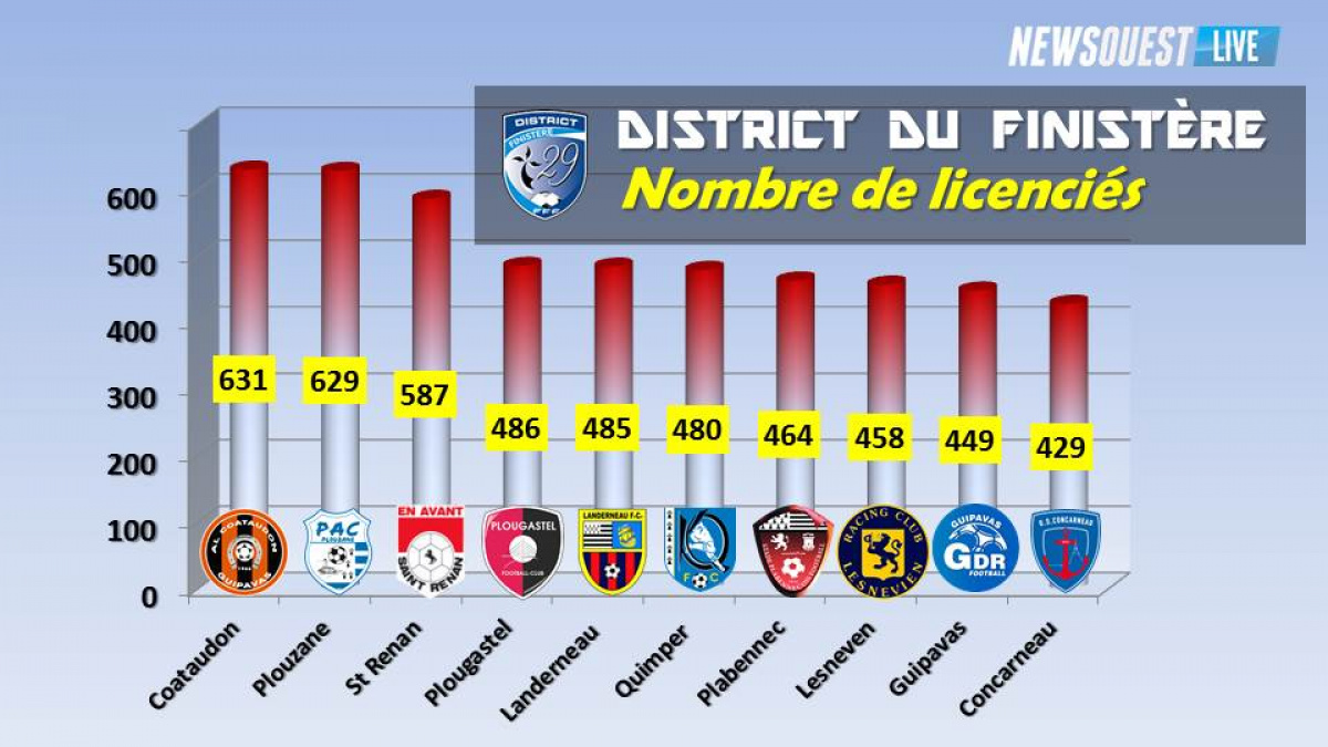 Que de chemin parcouru par l'AL Coataudon, à la trajectoire exponentielle, sur cette dernière décennie. Passé de la D2 à la R3, en senior, en deux ans, auteur d'un 6ème tour de la coupe de France face à Liffré en 2019/2020, d'un 5ème tour aux allures de fête, à Louannec ( imaginez pour un club qui n'avait jamais eu les maillots symoboliques du 4ème tour depuis sa création en 1966), l'AL Coataudon est devenue une référence du football dans le Finistère, par sa philosophie et sa manière de valoriser tout licencié au sein de son club, des plus petits aux plus grands. Arrivés sur le podium, en 2019/2020, à la 3ème marche, les Orange et Noir sont maintenant officiellement, en cette rentrée 2021/2022, devenus pour la première fois, le premier club du Finistère, en nombre de licenciés, avec 631, détrônant le Plouzané AC, à 629 licenciés. L'EA Saint-Renan, avec 587, complète le podium. Significatif aussi, le Finistère-Nord se taille vraiment la part du lion, dans le top 5. Le Quimper Kerfeunteun FC, est le premier club à apparaître dans le classement, à la 6ème position, avec 480 licenciés. Autre surprise, l'ES Plogonnec, qui dans la partie Sud, devient le 3ème club, avec 367 licenciés, et se fraie une place sur le podium du 29 Sud, au côté du Quimper Kerfeunteun FC et de l'US Concarneau. Ca valorise l'excellent travail effectué, par les écureuils, dans tout leur volet formation.