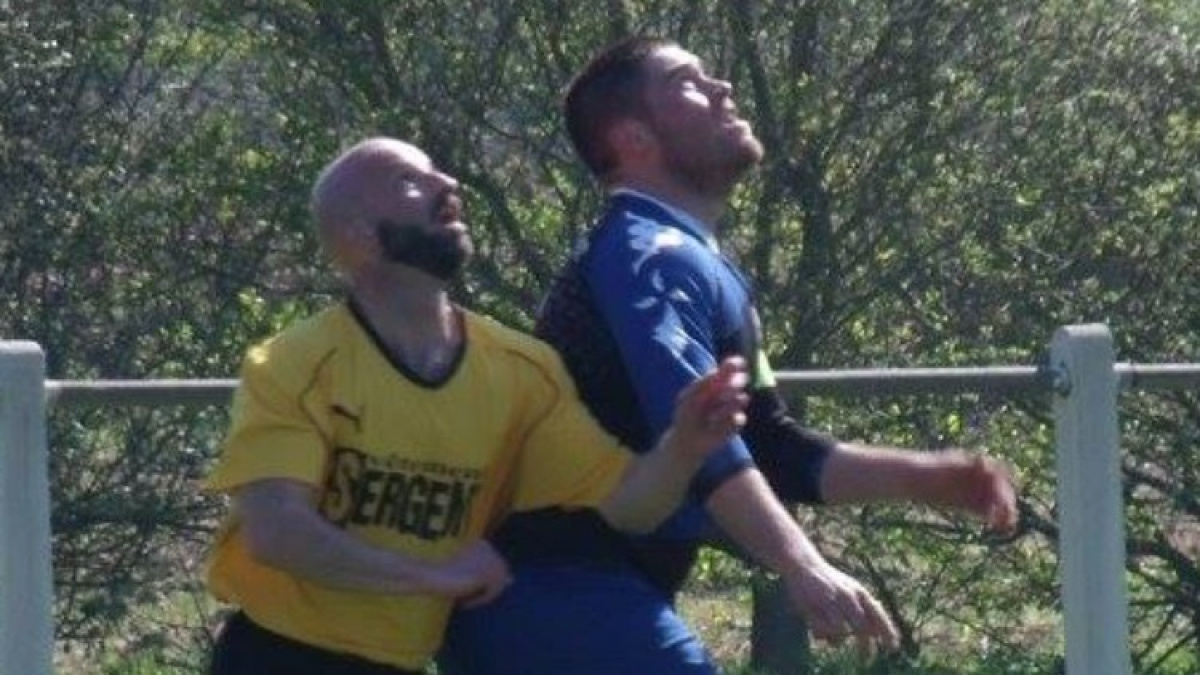 Maxime Gloaguen, auteur d'un doublé défie dans les airs le gardien local, Simon Dagorn.