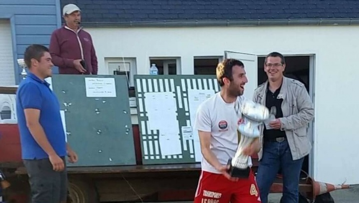 Geoffrey Balcon lève la coupe des vainqueurs pour l'ES Beuzec.