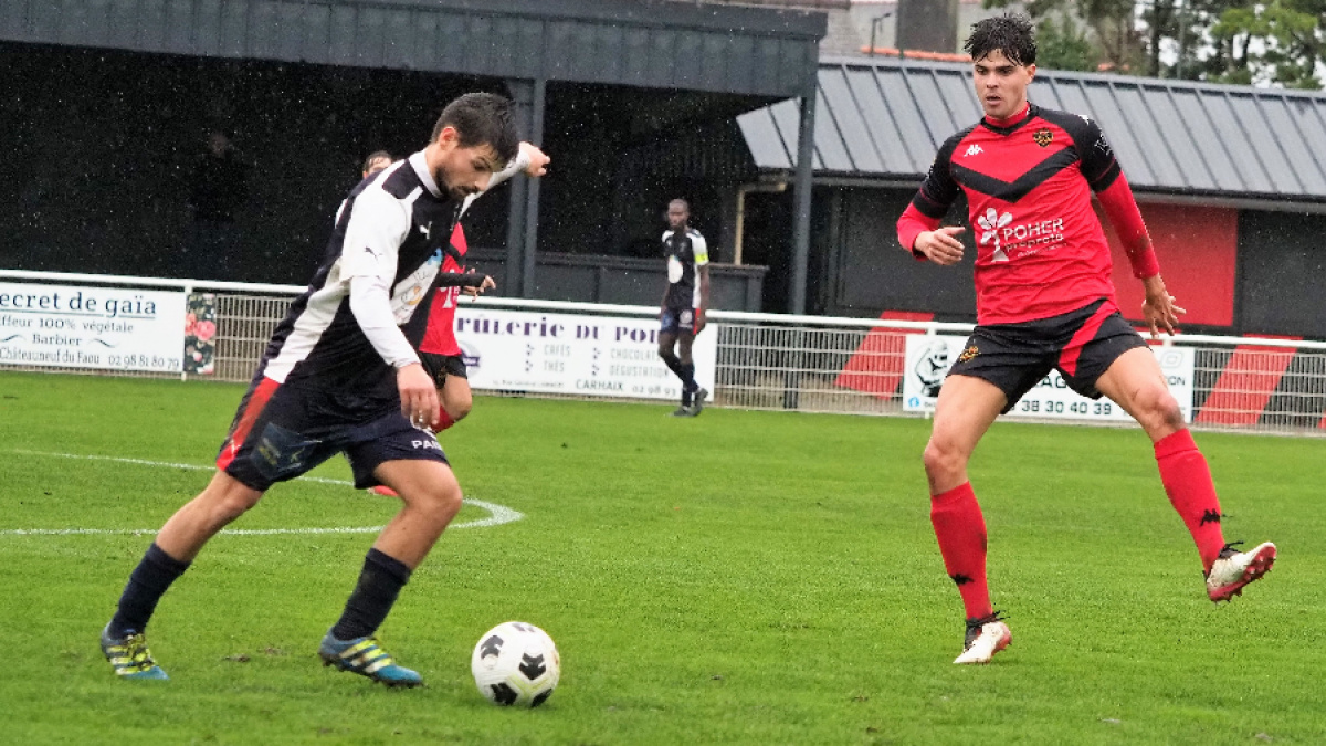Les Paimpolais ont obtenu une victoire très confortable et largement méritée devant les Carhaisiens ce dimanche sur la pelouse gorgée d’eau du stade Charles Pinson. « On a bien débuté le match », analysait après la rencontre Sébastien Méhault entraîneur des DC Carhaix. Effectivement ses joueurs ont ouvert le score peu avant 15 minutes de jeu après un centre de Masson repris victorieusement par Scieller (1-0, 14’). Ils avaient l’opportunité de faire évoluer la marque trois minutes plus tard après un tir de Le Bournot repoussé du pied par le gardien Le Cocquen. Les visiteurs qui avaient eu une occasion en or de refaire leur retard par Martin (32’) allaient finalement revenir à la hauteur de leur adversaire après une erreur de milieu de terrain des DC. Elle était parfaitement exploitée par Le Morvan (1-1, 37’). Après cette égalisation largement méritée, les Costarmoricains ne pouvaient rêver meilleur scénario pour leur retour sur le terrain.