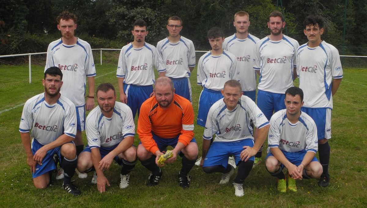 Légende: La première équipe de l'AS Scrigac, avant le match face à Berrien Huelgoat, pour le redémarrage officiel de l'ASS, en 2024/2025, dans ce premier tour de la coupe de France. Crédit photo: AS Scrignac