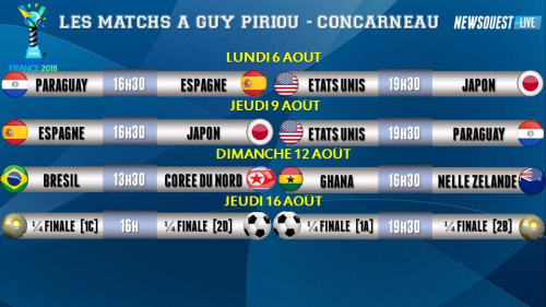 Le 05/08/2018 à 18h07Les matchs de la Coupe du Monde U20 disputés à Concarneau