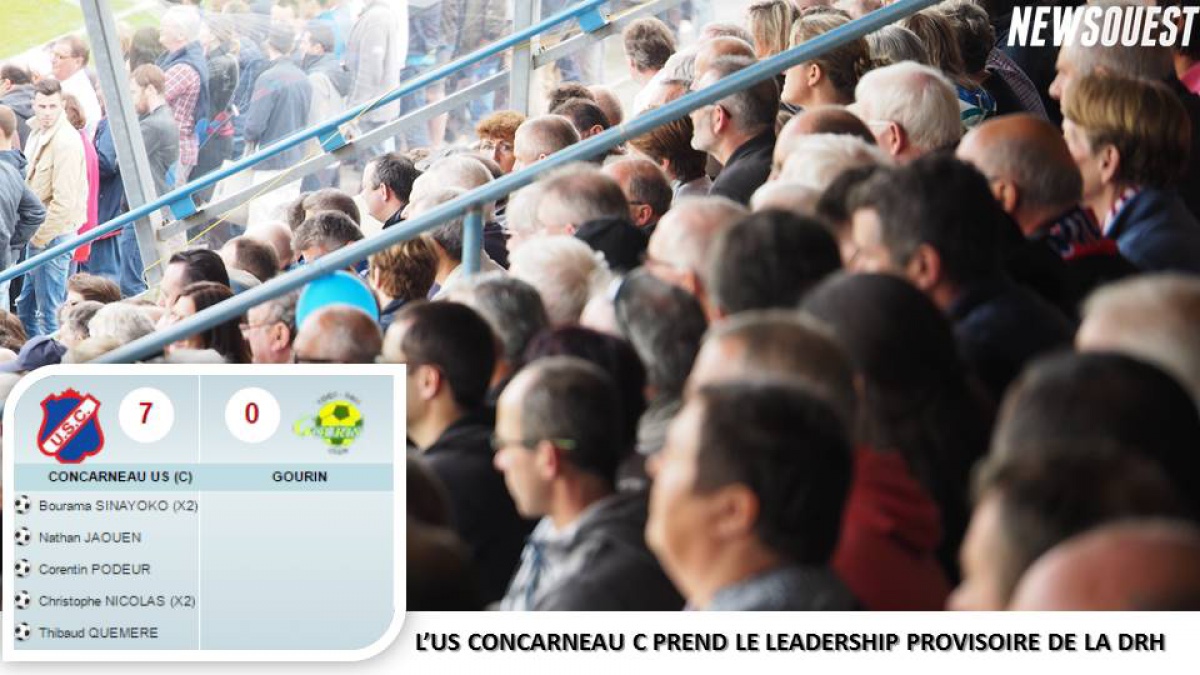 28 buts sur les cinq derniers matchs, une moyenne affolante de presque six buts par match, l'US Concarneau C de Sébastien Clément respire d'une santé incroyable sur le dernier mois et demi de compétition. Ce samedi soir, les Concarnois ont encore fait l'éclatante démonstration de force collective en atomisant le FC Gourin. Un 7-0 assené à Guy-Piriou avec un doublé de Christophe Nicolas, un but de Thibault Quéméré, un doublé de Bourama Synayoko, un pénalty de Corentin Podeur et un autre de Nathan Jaouen. Grâce à cette victoire, l'USC (C) prend provisoirement la tête de ce championnat de DRH, poule B. Source: site Allez les Thoniers