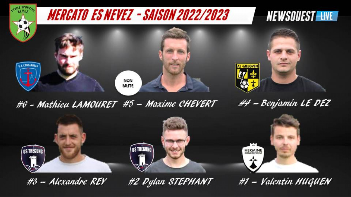 La saison dernière, Nevez avait terminé en tête du classement de la meilleure défense, mais se classait quatrième meilleure attaque de groupe. Pour renforcer ce secteur, deux attaquants ont été recrutées au mercato. Dylan Stéphant redevient névezien, trois ans après son départ à l'US Tregunc. A 24 ans, il fait son retour dans l’effectif bulgare. Autre attaquant avec l'arrivée de Mathieu Lamouret, sixième recrue du mercato névezien. A 26 ans, cet attaquant évoluait la saison dernière à l'US Concarneau. Au niveau du secteur défensif, Valentin Huguen est la première recrue de ce mercato estival. Ce latéral gauche de 25 ans arrive de l'Hermine Concarneau. Le latéral gauche Alexandre Rey (25 ans) évoluait à l'US Tregunc la saison dernière. L'ex gardien de l'AS Melgven, Benjamin Le Dez (25 ans), vient rejoindre l'effectif de l'ES Nevez. Enfin dernière recrue du mercato Névezien avec Maxime Chevert (31 ans), latéral droit Non Muté.