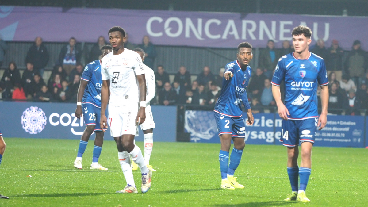 Le 0-0, à la mi-temps a été un moindre mal pour les Concarnois, qui se sont fait bousculer comme jamais en cette saison, par le Dijon FC. Rappelant la force collective du Red Star FC, à Guy-Piriou, sur l'année de leur remontée en Ligue 2 (2021/2022), les Dijonnais ont été maître absolu de la première heure de jeu. Par trois fois, les Thoniers sont passés à l'orange en première mi-temps, sauvé par leur portier, Antoine Philippon (18', 44'), à deux reprises, avant que les Bourguignons ne trouvent à juste titre la récompense de leur excellente tenue (0-1, 49'). Piqué et forcé de sortir à leur tour de leur coquille, les Concarnois n'ont pas connu une période de rodage dans le réalisme. La première mèche a sauté le verrou visiteur, qui apparaissait collé à la glue. Le rentrant Joseph Séry claquait une tête (1-1, 58'). Alors que le rapport de forces était en train de s'inverser, Dijon signait un but en pleine lucarne de l'ex-Briochin, Hugo Vargas (1-2, 67'). Avec l'appui des 2.252 spectateurs, les Concarnois ont appuyé pour égaliser, un sauvetage sur la ligne, un dégagement en express, Dijon a résisté à cette furia locale (1-2, 90'+4).