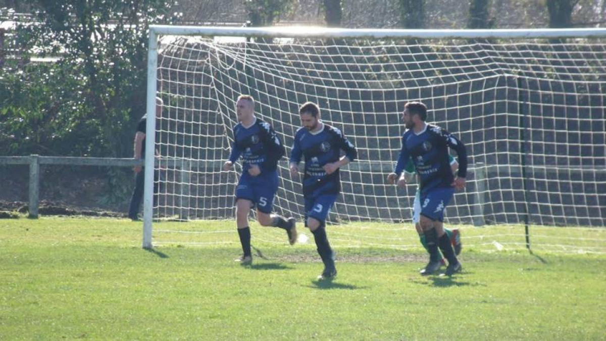 Mickaël LE COZ (au centre) et Mathieu BERRIET (à gauche) buteurs face à Ploneis.