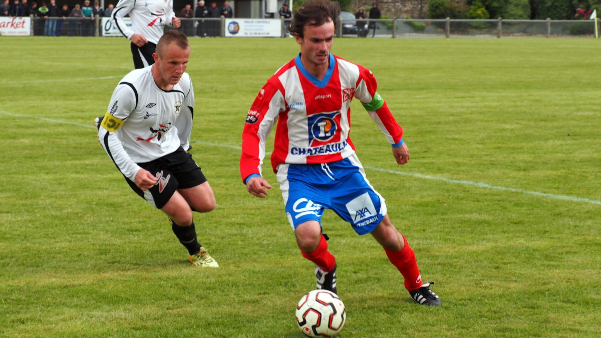 Frantz Desbureaux (FC Châteaulin) face à Mickaël Le Bescond (Stella Maris)