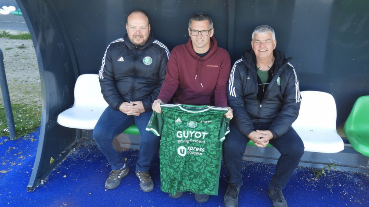 Légende: Nicolas Creach, nouvel entraîneur du Guiclan Plouénan FC, entouré de Julien Quiviger à sa guache, et Claude Menez, les deux co-présidents du GPFC. Crédit photo: GPFC