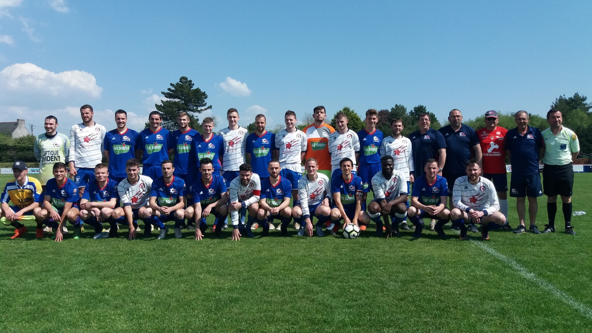 Les deux équipes avant le coup d'envoi. Crédit photo Plonéour FC