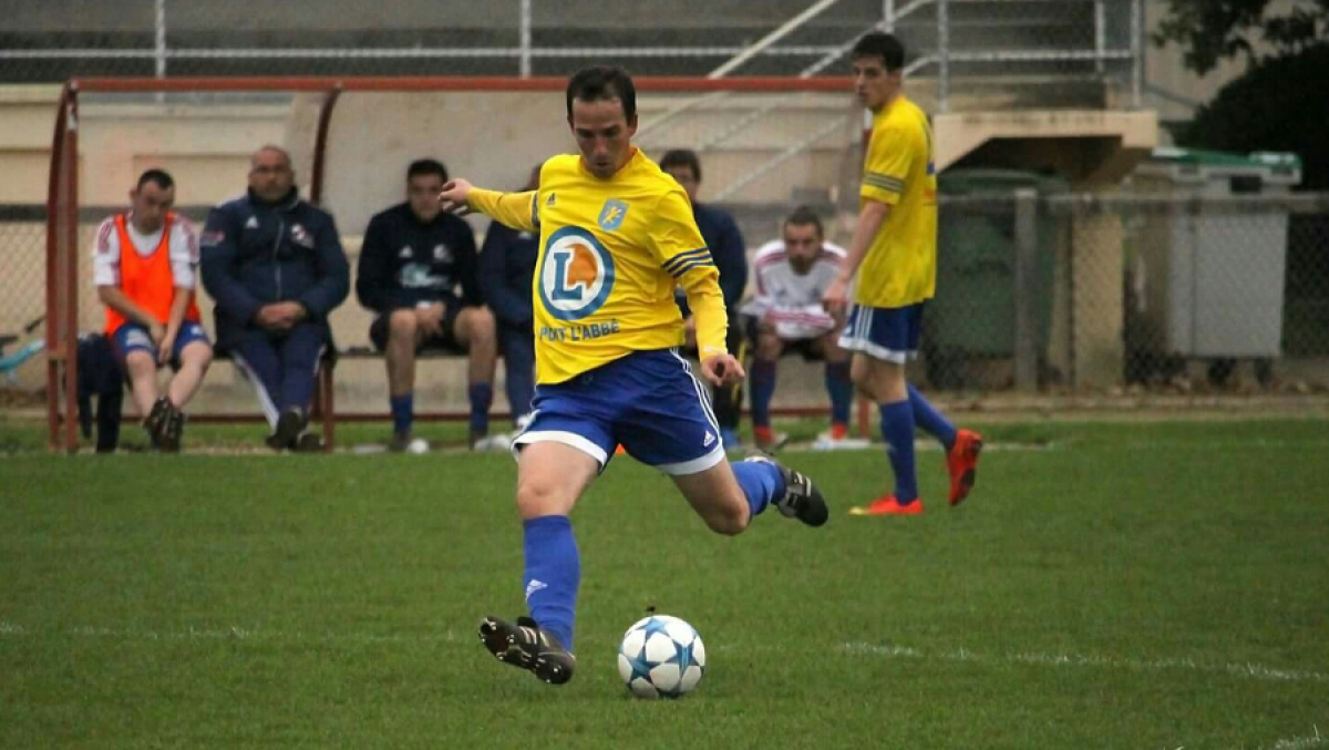 Coup-franc gagnant pour le Plomeurois, Mathieu Le Brun. Crédit photo Pont l'Abbé