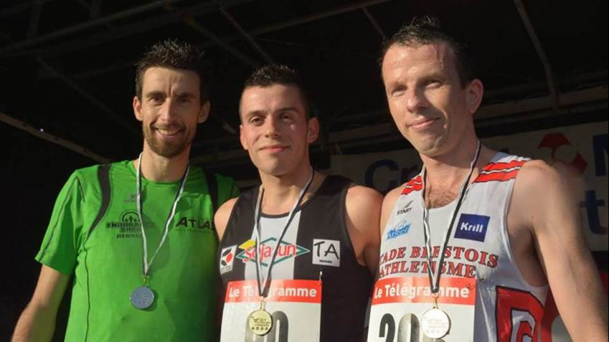 Le podium masculin. Crédit photo Ligue Bretagne Athlétisme