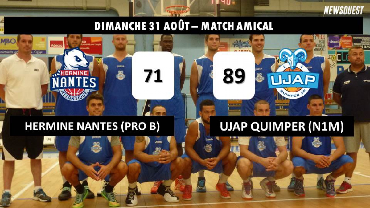 Ce dimanche, à Clisson, les Quimpérois jouaient leur 4ème match amical de préparation, le premier face à une équipe supérieure en niveau avec l'Hermine Nantes (Pro B). Et l'Ujap a joué crânement sa chance, dans la lignée de leur bon match face à l'Etendard Brest (100-51). Avec l'arrière Américain, Sammy Yeager, en feu avec ses 33 points, Quimper a renversé les pronostics de départ en s'offrant un second succès en match de préparation (77-89). A trois semaines de leur entrée en matière, en compétition, les Quimpérois consolident leur préparation et renforcent leur capital confiance. Source: le Télégramme.