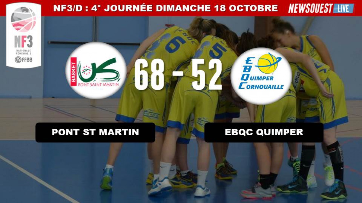 Toujours diminuées par l'absence de la capitaine Aurélie Kerdreux, les filles de Quimper sont orphelines de leur joueuse clé. Pour le moment, elles font le dos rond en attendant des jours meilleurs. Elles se déplaçaient sur les bords de Loire pour affronter l'équipe de Pont Saint Martin, invaincue depuis le début du championnat. Les Quimpéroises concédaient une nouvelle défaite sur le score de 68 points à 52. Depuis le début de saison, l'EBQC ne compte qu'une victoire, mais début novembre avec le retour d'Aurélie Kerdreux, les résultats devraient être meilleurs, et Quimper pourra retrouver son équipe type.