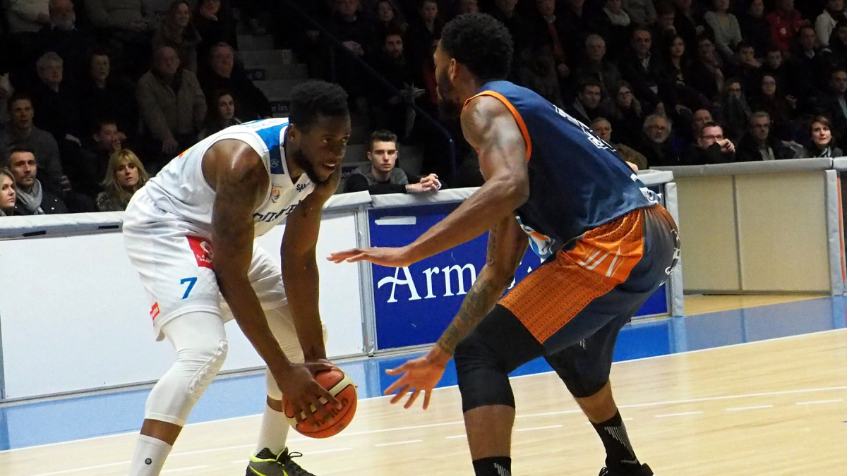 Toute la concentration de Omar Strong, l'arrière de l'Ujap Quimper