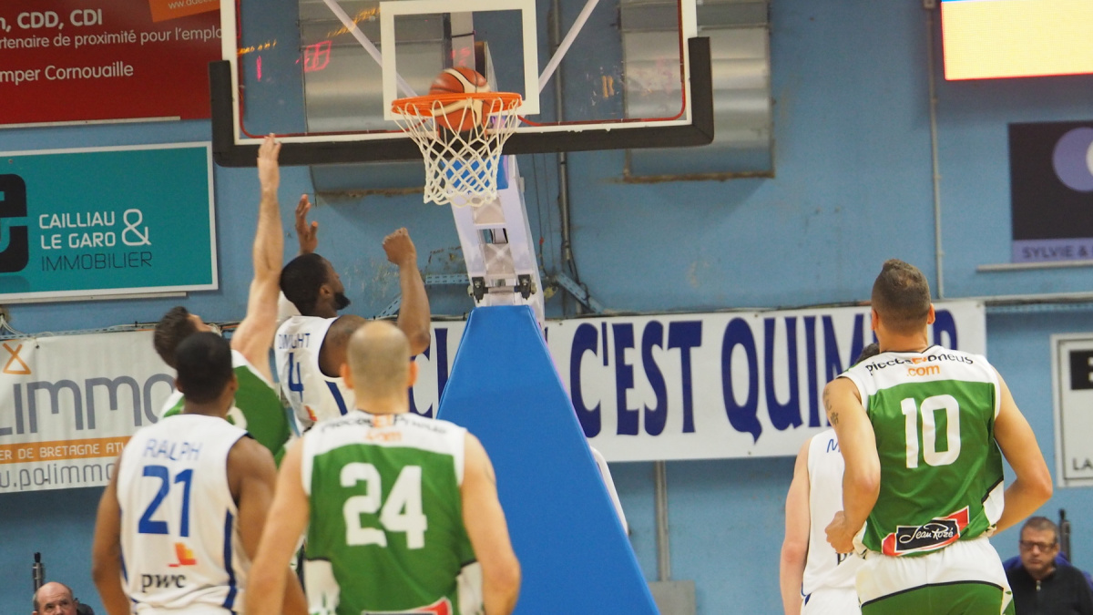 Ce gros éclat encaissé ne resta pas sans conséquance. Quimper faisait perdre les nerfs de Vitré, à l'image de leur entraîneur charismatique, Zoran Durdevic, exclu pour deux fautes techniques. Vitré apparaissait ans solution. Après leur six points marqués en 10 minutes, au second quart-temps, Vitré parvenait à cette même piètre performance globale au troisième acte. Contrairement à Quimper, qui pétaradait toujours dans ce derby. Kévin Mondésir, Vycheslav Bobrov pilonnaient le secteur intérieur en verrouillant le rebond (64-32).