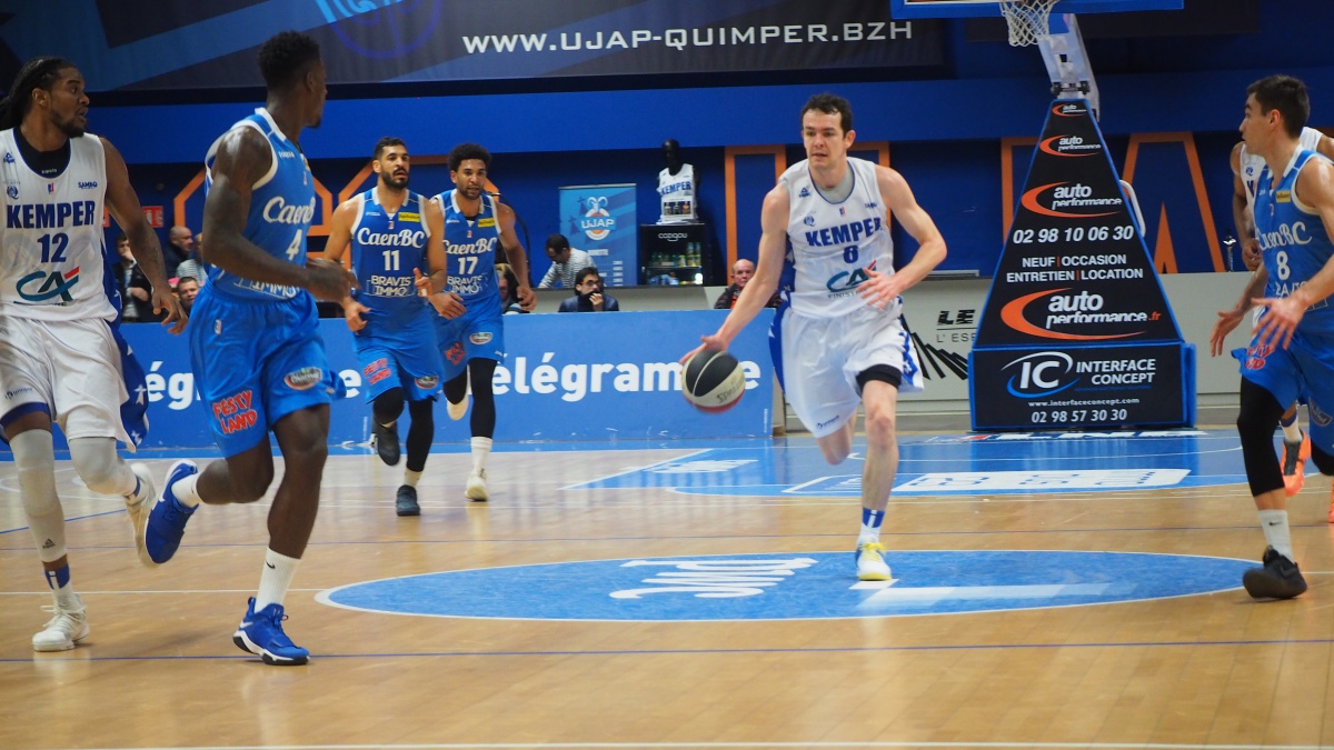 Sur la pente ascendante, suite à leurs deux victoires contre Poitiers (76-84) et Vichy Clermont (68-67), l'Ujap Quimper jouait une partie importante face au promu de Caen. Face à un adversaire en manque cruel de victoires sur leurs 10 derniers matchs, Quimper connaissait trop ce sentiment pour laisser cette formation normande reprendre confiance. Sur une rencontre jouée à forte intensité, des deux côtés des parquets, l'Ujap Quimper et Caen se sont donnés à un match offensif. 48-52 à la mi-temps, le dernier mot est revenu à l'Ujap Quimper, dans un finish au couteau (97-90).