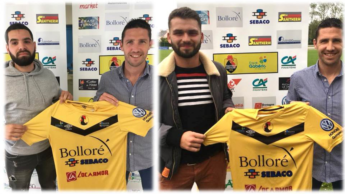 Les Paotred Dispount annoncent l'arrivée de Maël EL BOUADELLATI et de Mikaël GUILLAMOT au sein du club pour la saison 2019-2020. Ils ont tous les deux accepté de relever le défi proposé par Mikaël Caoudal pour la saison prochaine. Maël El Bouadellati (ex Quimper Kerfeunteun FC, US Quimper, Quimper Italia, US Pluguffan...) possède le talent nécessaire pour s'imposer en ligue mais il est en quête de stabilité et de confiance pour s'inscrire dans une durée. Quant au meneur de jeu de l'AS Plomelin, il quitte son club formateur pour la première fois à 26 ans. Il retrouvera son ancien partenaire, Thomas Volant qui s'est parfaitement acclimaté à l'esprit de Lestonan. Joueur également confirmé à un niveau ligue, il entend passer un palier sportif par ce choix courageux.