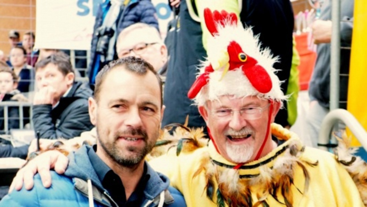Mickaël Pagis avec Gérard, le coq de Guiscriff