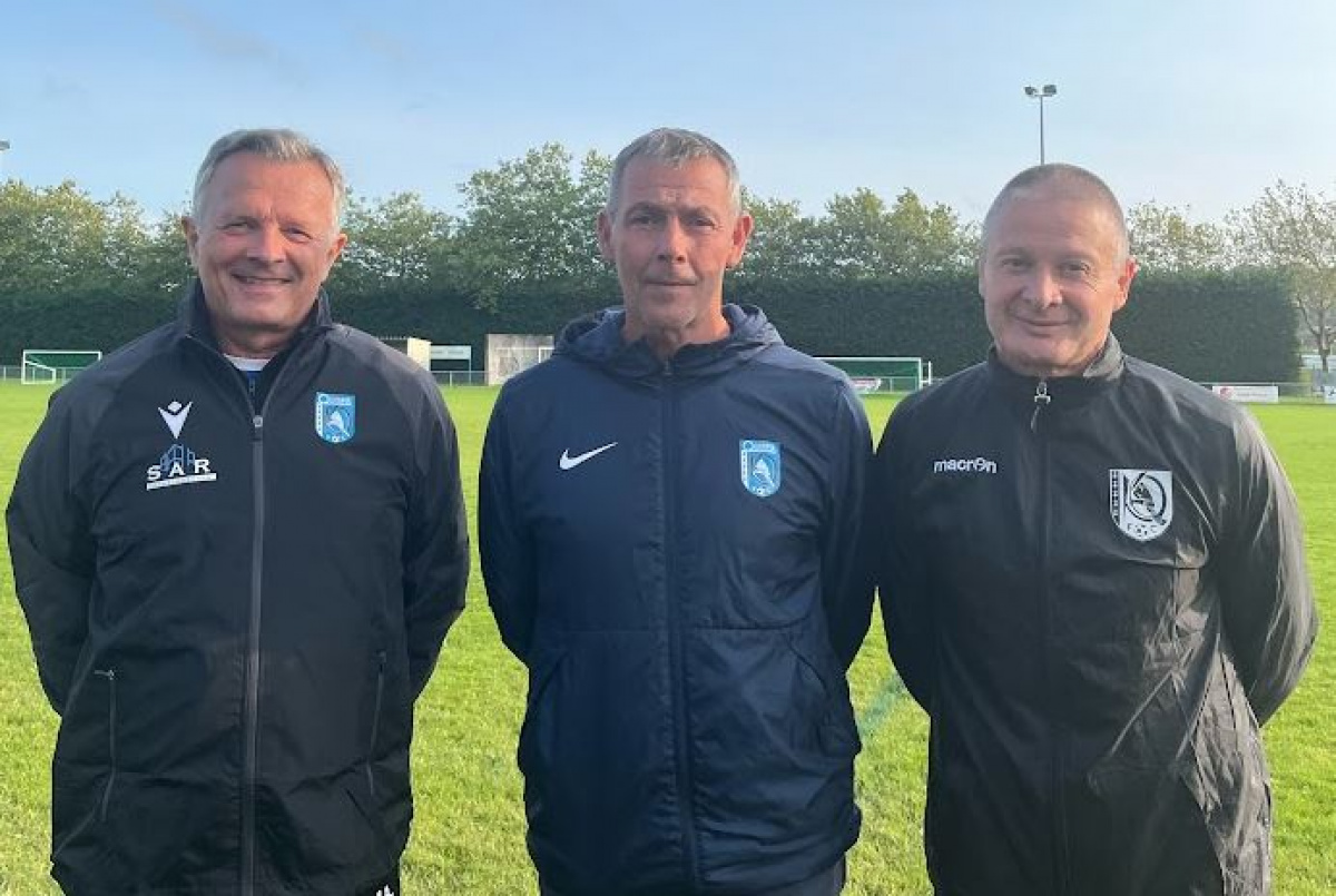 Légende: Philippe Petit (à gauche) prend la suite de l'intérim de Ronan Salaün ( au centre), à la tête de l'équipe féminine. Il sera accompagné par Frédéric Garnier ( à droite) sur l'ensemble de cette saison 2023/2024. Crédit photo: QKFC