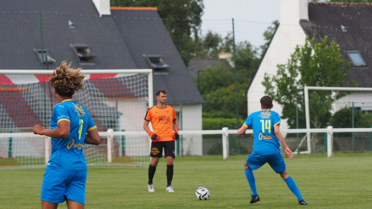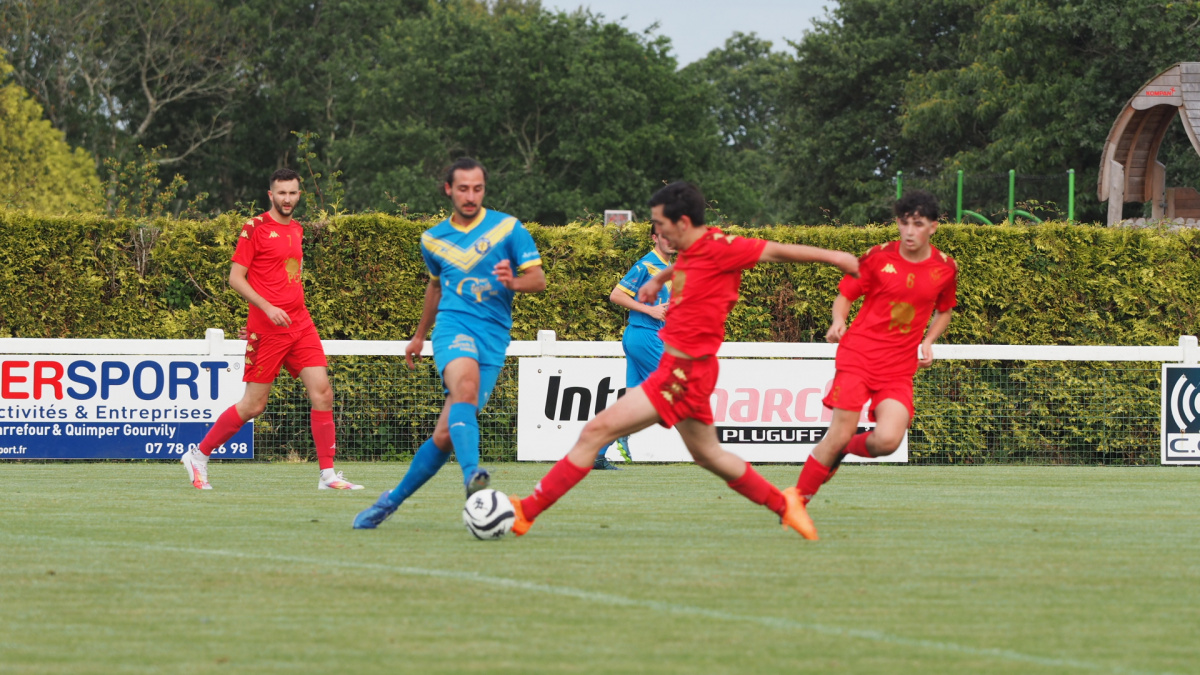 Côté Pluguffanais, c'était carrément une deuxième équipe qui arrivait sur le terrain. A l'écart sur cette première période, le groupe ( plus de la réserve en D3) avait enchaîné les 15X15 m sur le terrain annexe pour arriver boosté dans cette seconde période. L'entame était même déroutante, avec un ballon gelé par les locaux sur deux minutes de possession, Théo Lamboley ajustait à sa conclusion, une reprise de volée frôlant les buts de Valentin Thiec (47').