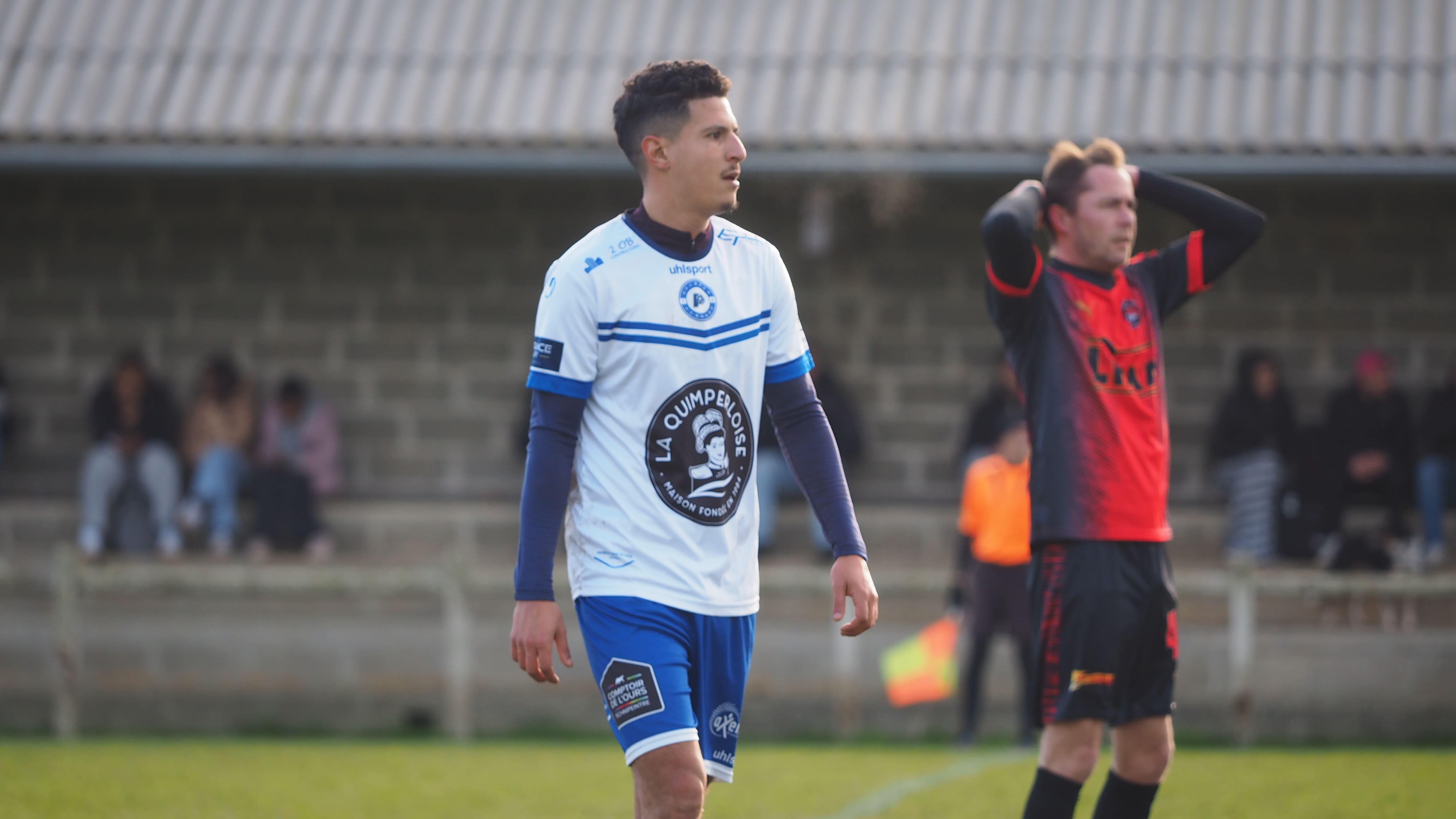 Nous n'avons pas fait un bon match, on perd un joueur, Fabien Berg, on espère pour lui que ça ne sera pas trop grave. On va récupérer des joueurs sur cette prochaine semaine, trois défenseurs centraux, un milieu de terrain... Je sens mes anciens frustrés parce qu'ils ne s'y retouvent pas non plus. On prône le jeu simple, certains jeunes ont tendance à tripoter le ballon, au lieu d'être dans ce fil conducteur collectif. Ce match face à Quéménéven se jouait sur un détail. On n'a pas suffisamment pesé offensivement.