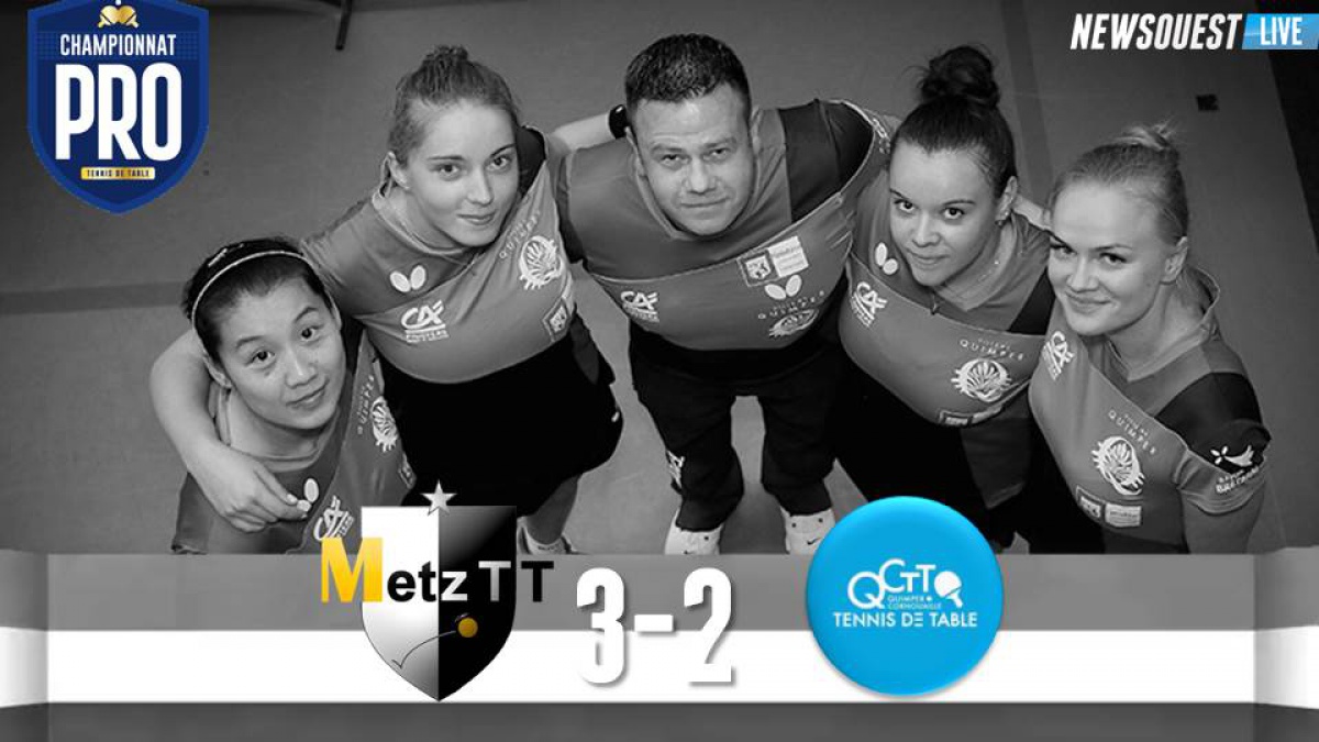 Après sa dernière victoire face à Issy les Moulineaux le 8 octobre, les Quimpéroises reprennaient la compétition avec un déplacement à Metz. Pour cette rencontre, Eva Andorin (N° 61) était titulaire pour la première fois de la saison. C'est elle qui ouvrait le bal avec la première manche face à Daniela Monteiro Dodean (N° 39). La roumaine l'emportait en trois sets (11-4 ; 11-5 ; 11-7). La seconde rencontre voyait s'affronter les deux têtes de série de chaque équipe et s'annoncait très disputée. Les deux joueuses se rendaient coup sur coup à l'image du premier set qui voyait la quimpéroise inscrire les quatre derniers points pour coiffer son adversaire sur le fil. Le second set était aussi disputé mais c'était la messine qui revenait au score. Il fallait un cinquième set pour départager les deux joueuses. Malgré une belle résistance, la Quimpéroise devait s'incliner 11-8 dans le dernier set.