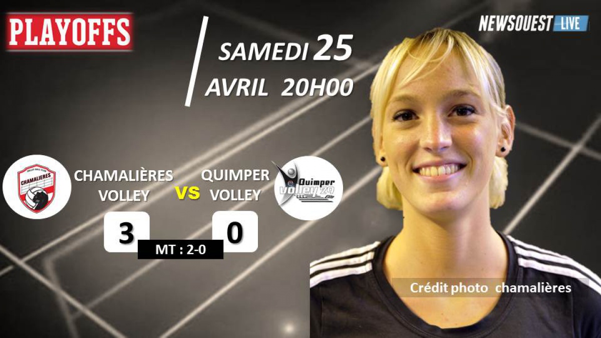 Pour le compte de la quatrième journée des playoffs, Quimper se déplaçait en Auvergne pour affronter Chamalières. Une équipe qui a souvent posé des problèmes au Quimper Volley. Il y a trois ans, les Auvergnates avaient privé les Quimpéroises d'une première montée en Ligue A. Cette année, au match aller des playoff, elle s'était imposée à la Halle des Sports par 3-2 et avait fait une grosse impression dès le début des playoffs. Depuis, les Quimpéroises ont gagné les deux rencontres suivantes (Mougins et Evreux) par 3-1 et les Auvergnates ont perdu les deux matchs par 3-2. Il y avait un air de revanche pour les filles d'Emmanuel Fouchet qui voulaient confirmer la place de co-leader. Chamalières a entamé la partie pied au plancher et ont étouffé Quimper en les battant en 3 sets secs (25-11 25-21 25-15). Ce soir, Evreux avait accroché Nancy Vandoeuvre, le leader qui parvenait à arracher la victoire 3 à 2. Les Quimpéroises ont laissé passer une chance de revenir sur la tête du classement et samedi prochain, la venue de Mougins sera le tournant des playoffs.