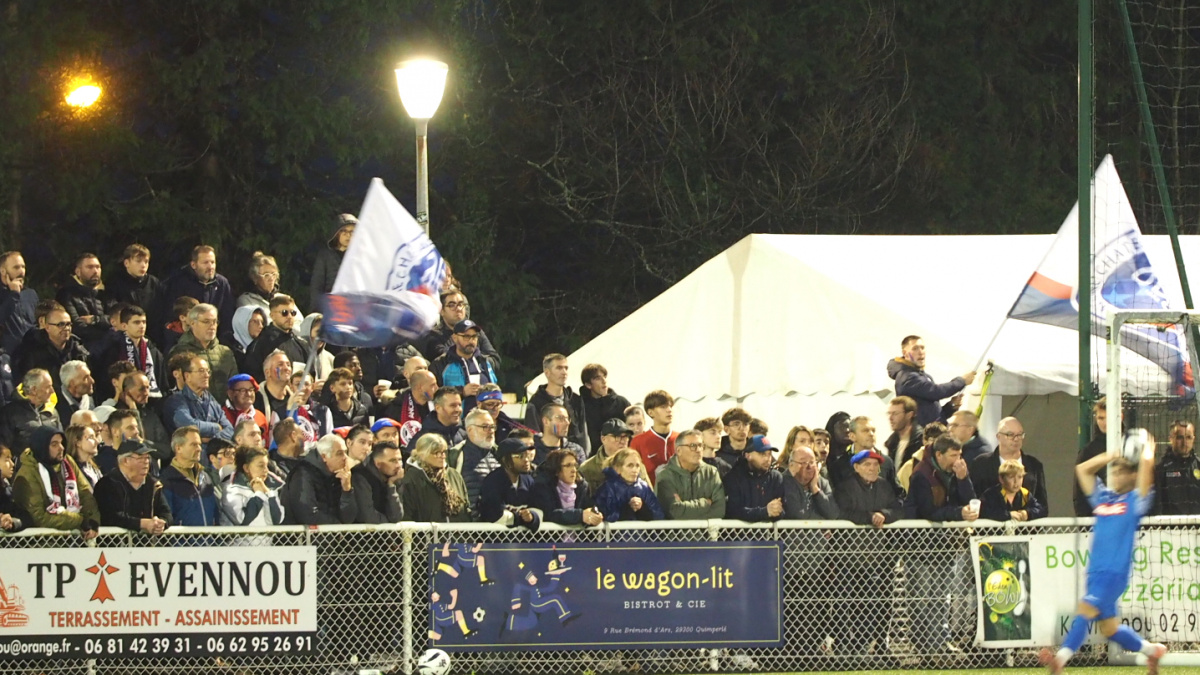 Le rêve de poursuivre l'aventure est passé extrêmement rapidement pour le Stade Quimperlois (R3) sur ce 7ème tour de la coupe de France face au Mayennais de Château-Gontier (R1). Les deux divisions d'écart au coup d'envoi se sont révélées être un fossé irratrapable, très rapidement, pratiquement trop rapidement, jusqu'à devenir un véritable gouffre au fil conducteur de la première mi-temps. Il y'avait pourtant tout réuni pour vivre un grand moment, un stade plein de Jean Charter rempli de 2.000 spectateurs, une pluie arrêtée pratiquement au coup d'envoi, et la confirmation du passage de l'EA Guingamp (L2), futur adversaire au 8ème tour. Au prix d'une première mi-temps à complet sens unique, les Mayennais ont fait une très forte impression dans l'intelligence, dans la construction d'un jeu élaboré, et leurs longs temps de conservation. A la mi-temps, le suspense avait été mis définitivement rentré aux vestiaires, un 0-6 asséné d'une manière presque chirurgicale, qui ne laissait plus le moindre espoir aux Qimperlois. Et quand le mot d'ordre fut de gagner a minima la deuxième mi-temps, côté local, Château-Gontier portait le pli définitif sur la qualification en mettant le 7ème en reprise de mi-temps. Pouvant sauver l'honneur à deux reprises par Léo Quéguiner, en première mi-temps, le rapport de forces était devenu trop inégal entre les deux équipes. Vivant ce même sentiment d'impuissance observé l'an dernier au 6ème tour de la coupe de Bretagne face à l'AG Plouvorn (R1), qui avait aussi étrillé le FC Quimperlé (R2) sur son terrain, par ce même rouleau compresseur intégral (0-9). Les Quimperlois ont vécu un an après, presque jour pour jour, face à Château-Goniter, le même type de match. Le Stade Quimperlois (R3) quitte la compétition conscient d'être tombé sur bien plus fort, il restera accroché en mémoire, ce parcours qui a redonné une pleine lumière au naissant Stade Quimperlois (0-9, 90'+2).