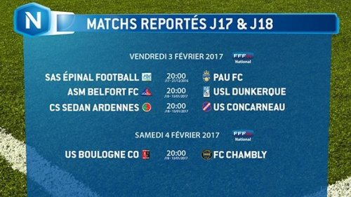 17/01/17 - 17h48Les dates de report des matchs de la 17° et 18°journée