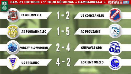 01/11/15 - 18h12Les résultats de la Coupe de Bretagne