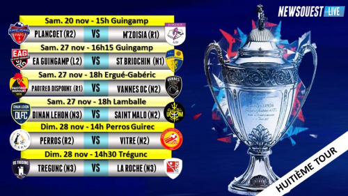 14/11/21 - 16h55Les affiches du 8° tour pour des clubs bretons qualifiés