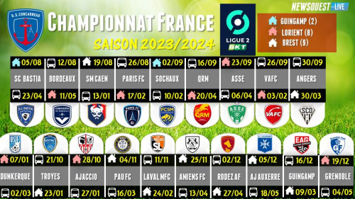 05/07/23 - 13h38Le calendrier officiel des matchs à domicile de Concarneau en Ligue 2