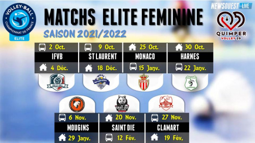 Le 30/09/2021 à 16h40Le calendrier du Quimper Volley