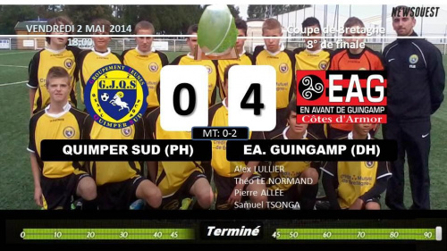 En U15, Quimper Sud (PH) est éliminé de la coupe de Bretagne en 8ème face à Guingamp (DH élite). 0-4.