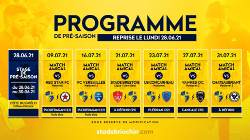 Le 10/06/2021 à 18h06Le calendrier des matchs de préparation du Stade Briochin