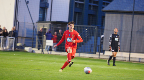 Le 02/03/2024 à 22h49Les DC Carhaix amènent le bus impérial à Fouesnant, Guewan Tallec le gare derrière la ligne de but local